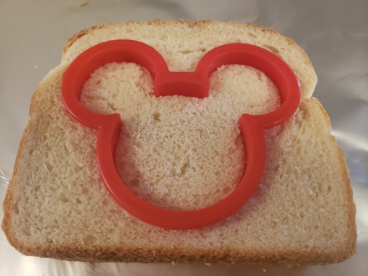 Grab your foil, cutter, and bread. Push the cutter into the bread only about half way.