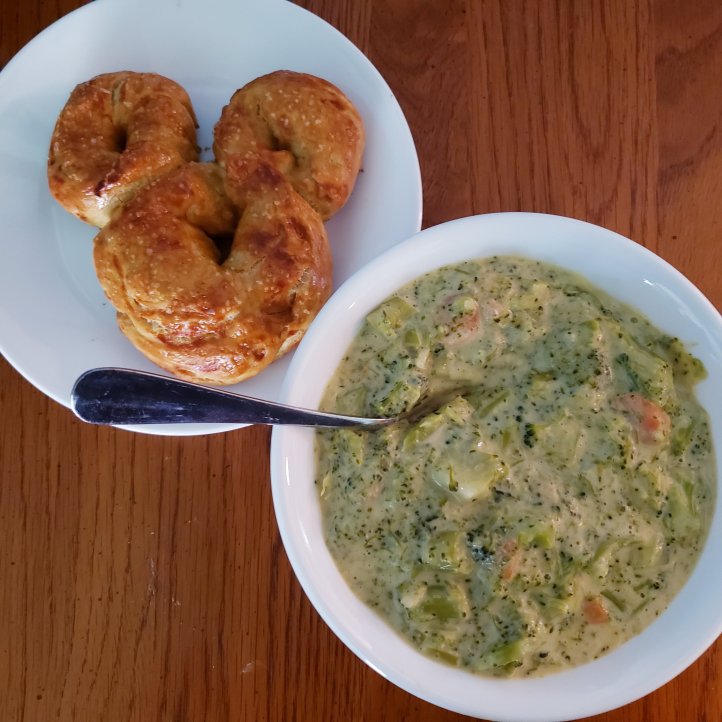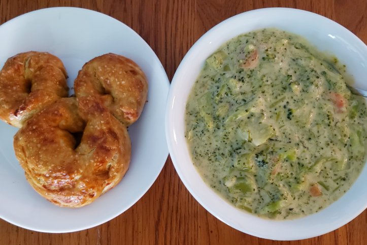 The best pairing. Cheesy soup. Salty pretzel. Dip away!