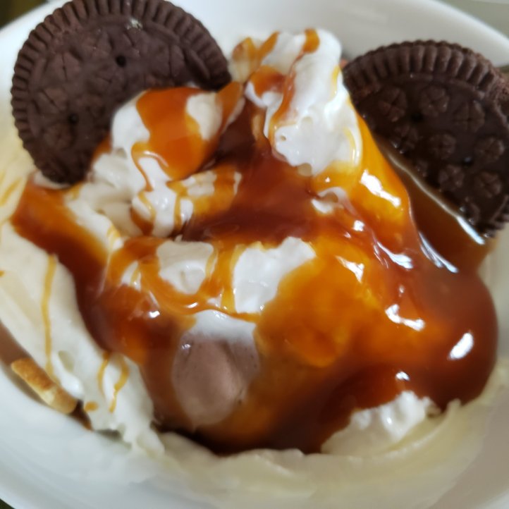 Whipped cream, caramel, peanuts, and red sanding sugar finished off my sundae.