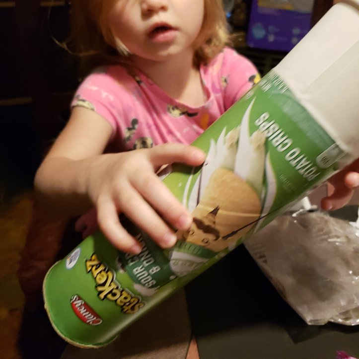 To make spyglasses, I started by cutting the metal end off the chip cans.