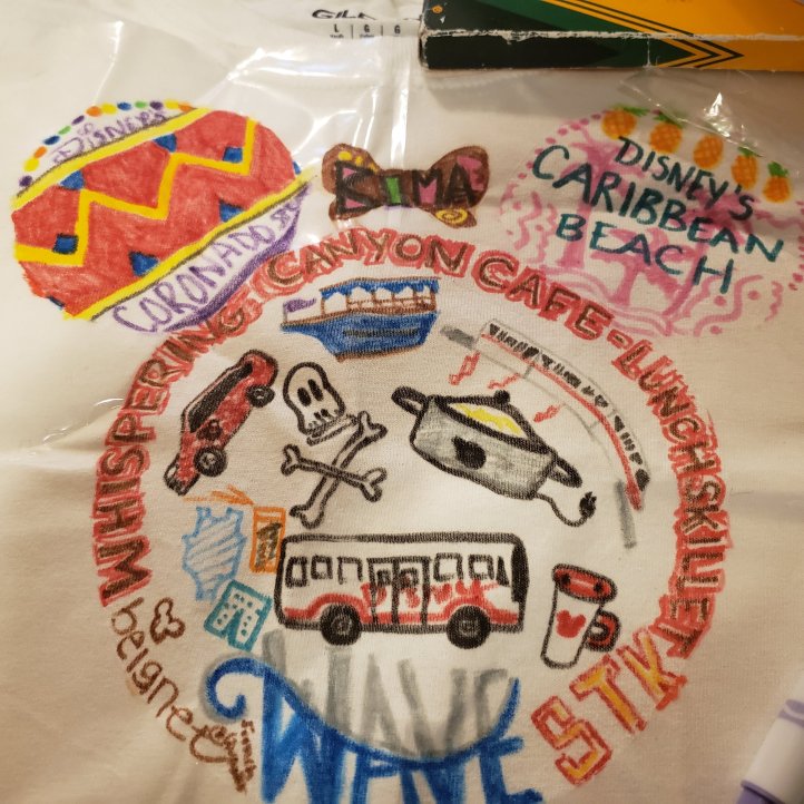 For this trip, I thought it would be fun to design and decorate shirts while we were actually there. Having a no- park trip, sometimes you need an afternoon craft for while the youngest (and oldest) Mouse naps.