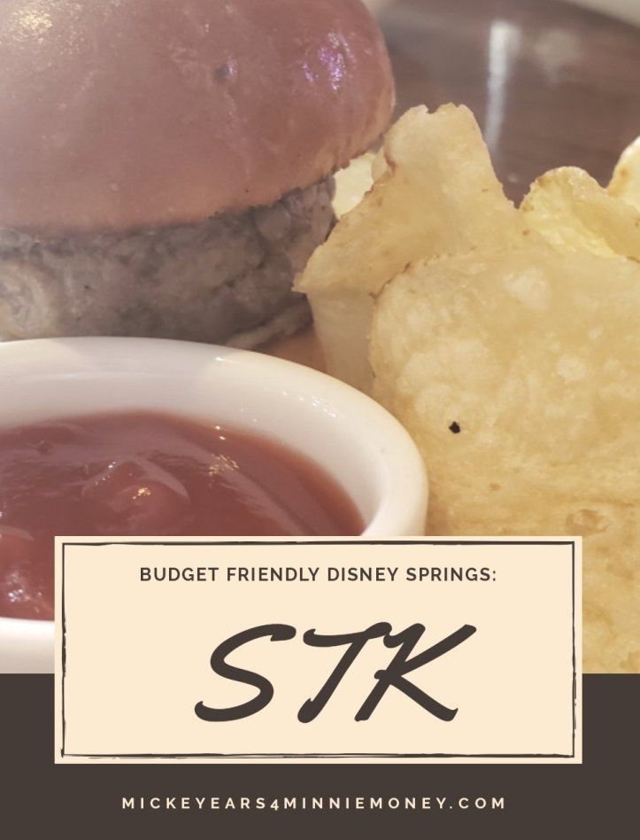 If you have wandered around Disney Springs, you have probably seen STK. STK (or steak. They seem to really like taking vowels off the menu to be extra trendy. Burgers are BRG’s) is a super high end restuarant that is way out of our food budget. It’s the kind of place where side dishes are priced separately (minimum $13 each!) and you can’t find the price for pop on the menu, so you drink water instead.