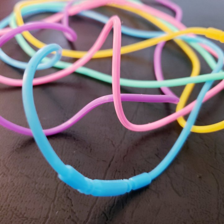 The plastic cords are actually super sturdy. They are just sticky enough to stop any beads if littles yank them off.