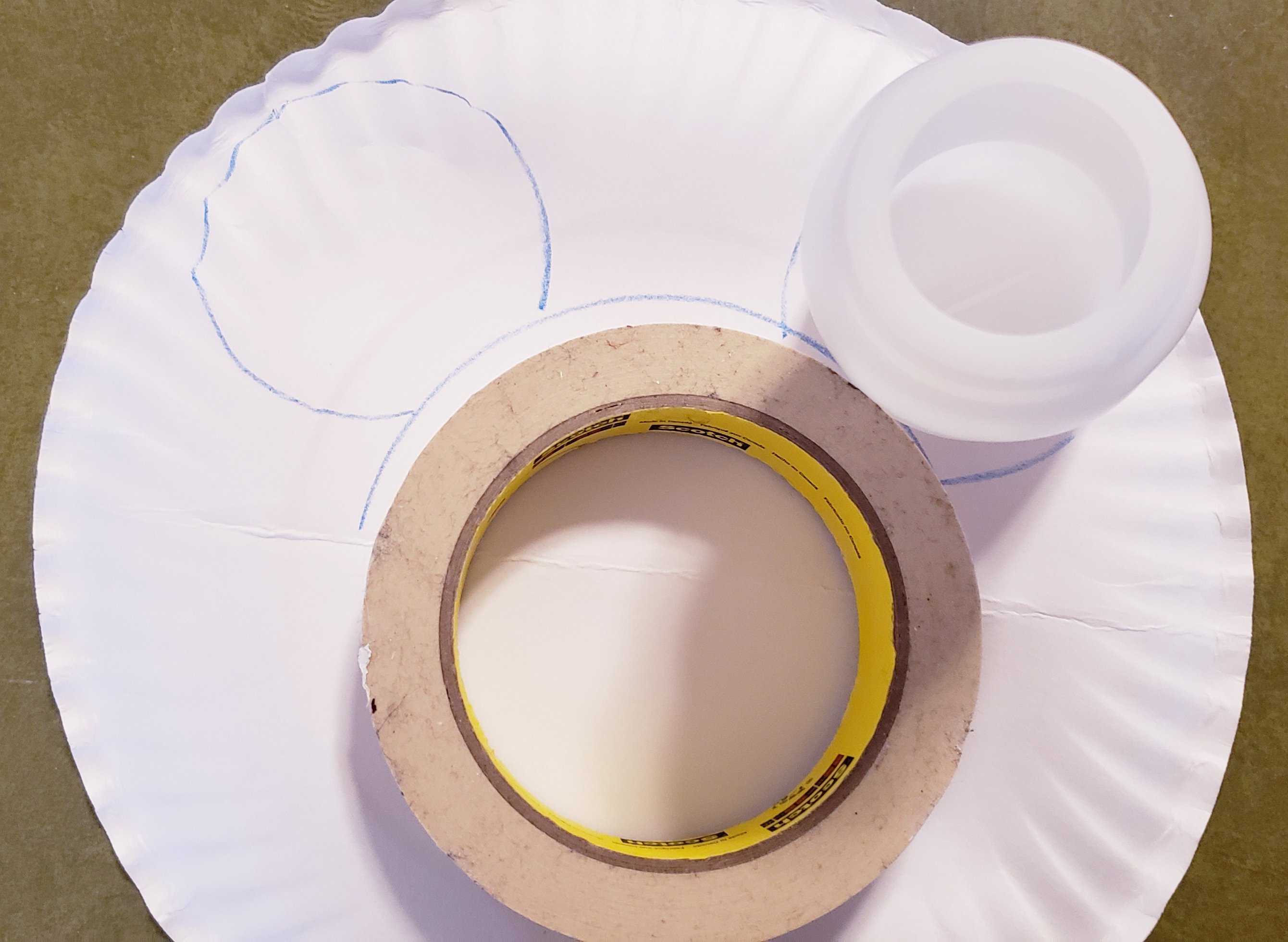 Fold a paper plate in half. Trace a half Mickey head using whatever you have laying around. My tape and water bottle worked great.Cut around the top of your Mickey outline. Add glue to Mickey’s face from the outside, then put a piece of pretty tissue paper on it. Flip over. Add glue to the area about your Mickey head and glue the tissue paper down. Add a few coins. Fold in half and either glue or tape the edges shut. Shake shake shake! Enjoy all your paper plate Mickey crafts!