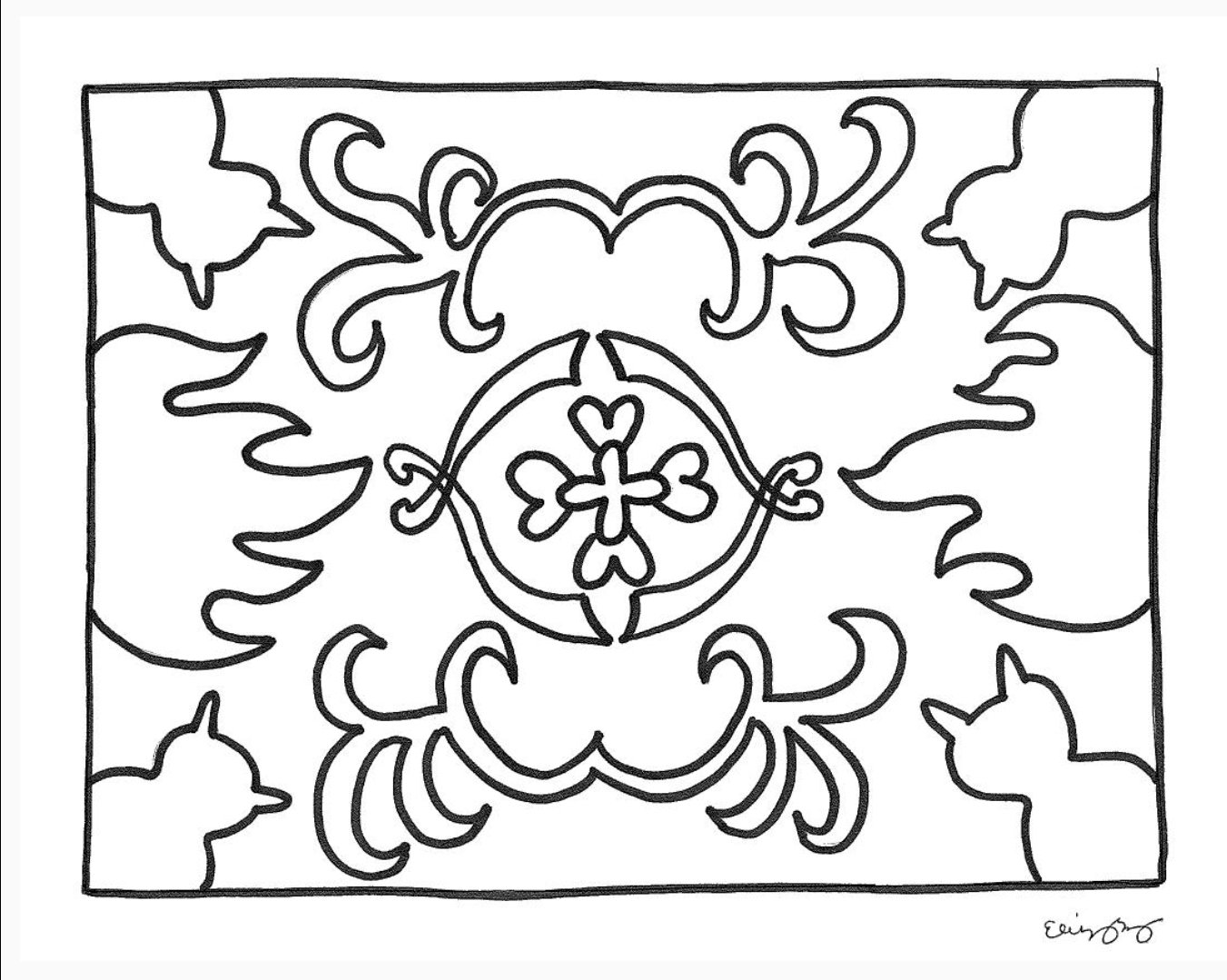 Here is the coloring page that I created with my own original artwork. Feel free to print it off and use with your family. Ideas to decorate would be to use scraps of yarn to make tassels, glue bits of brightly colored tissue paper for the flames and tigers, or color and laminate with contact paper to use as place mats.