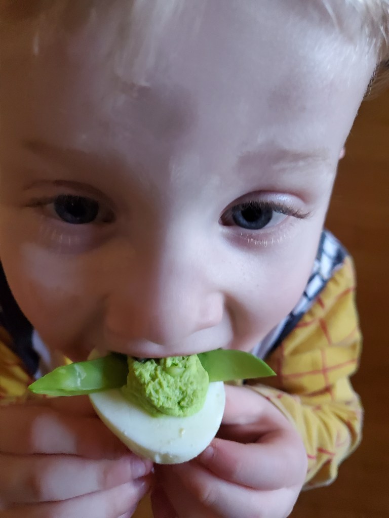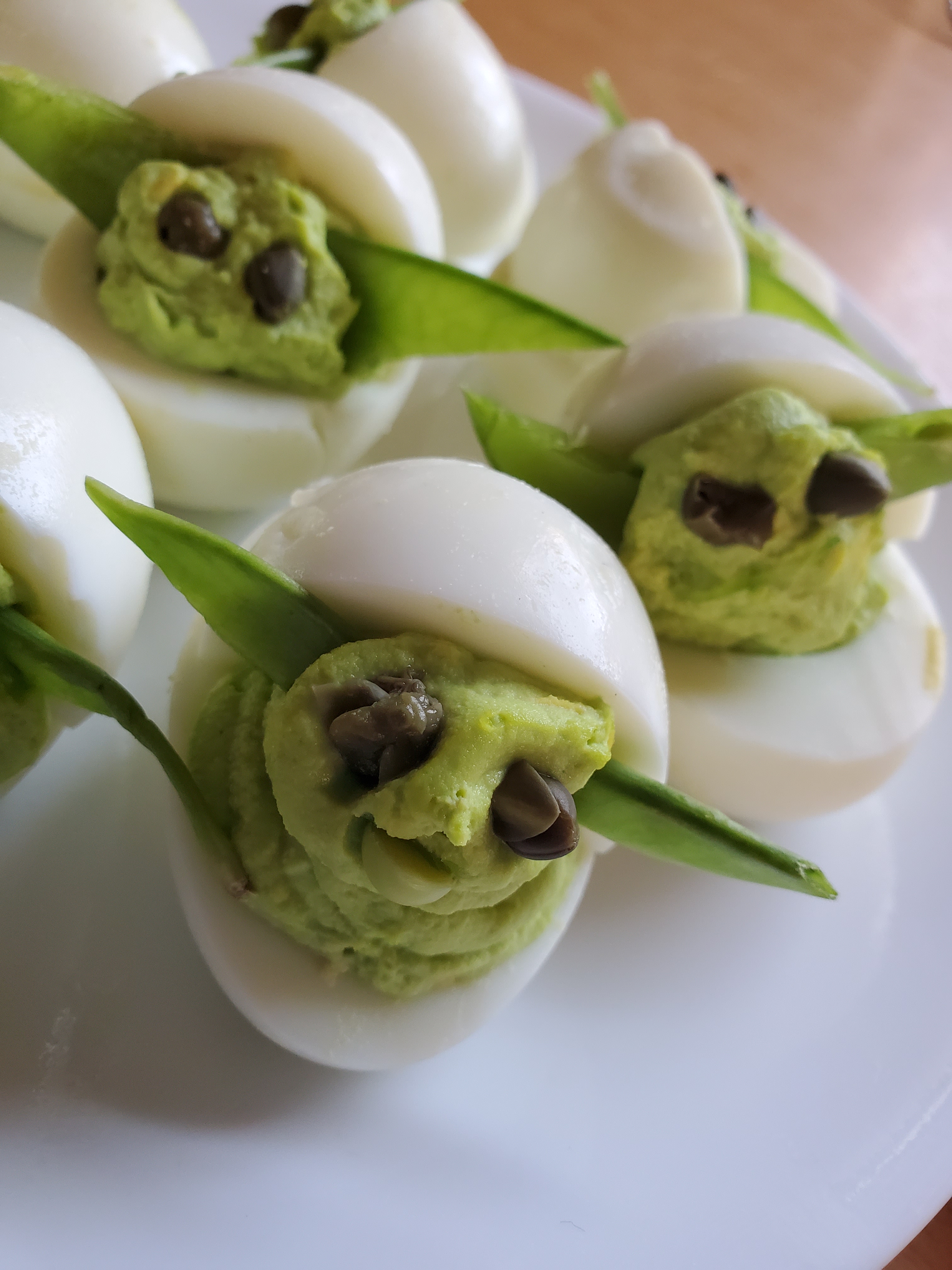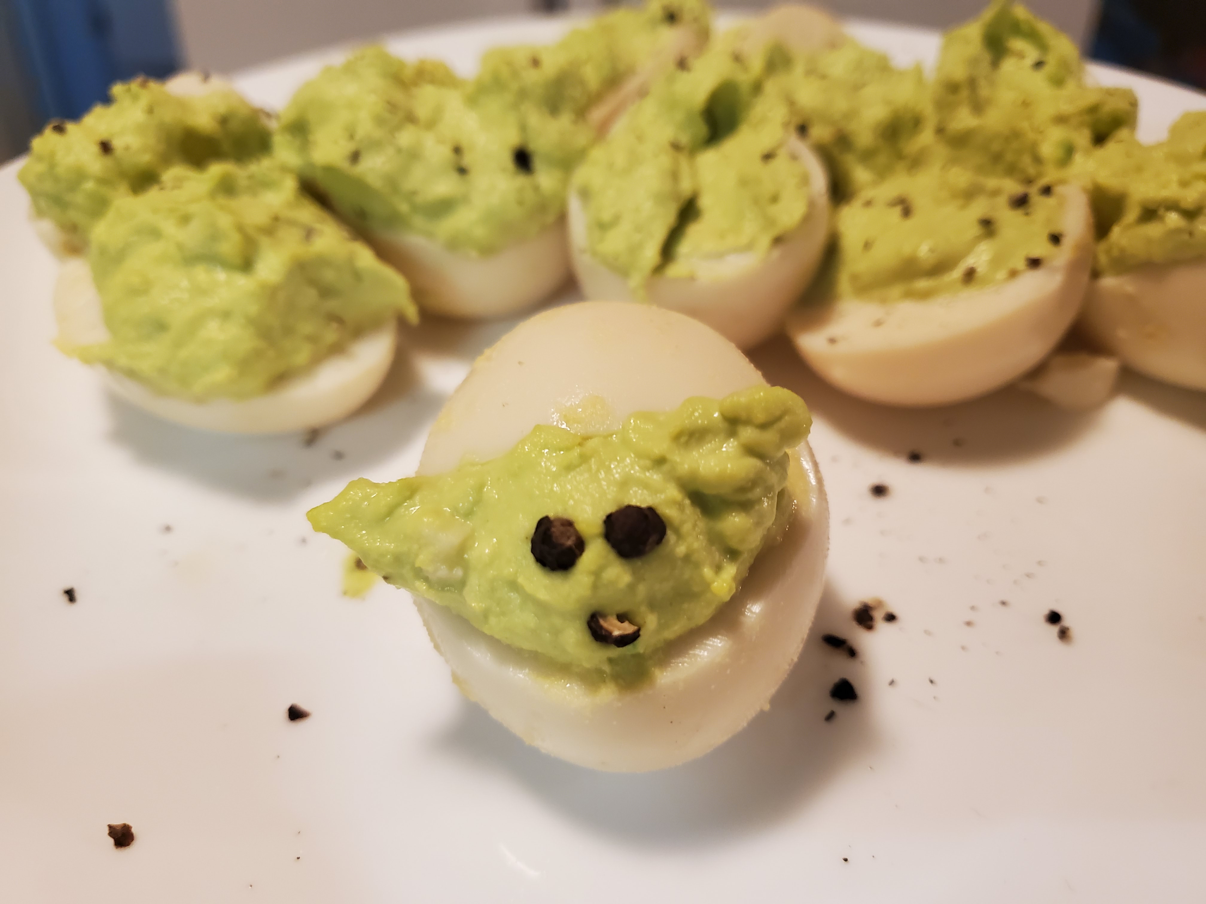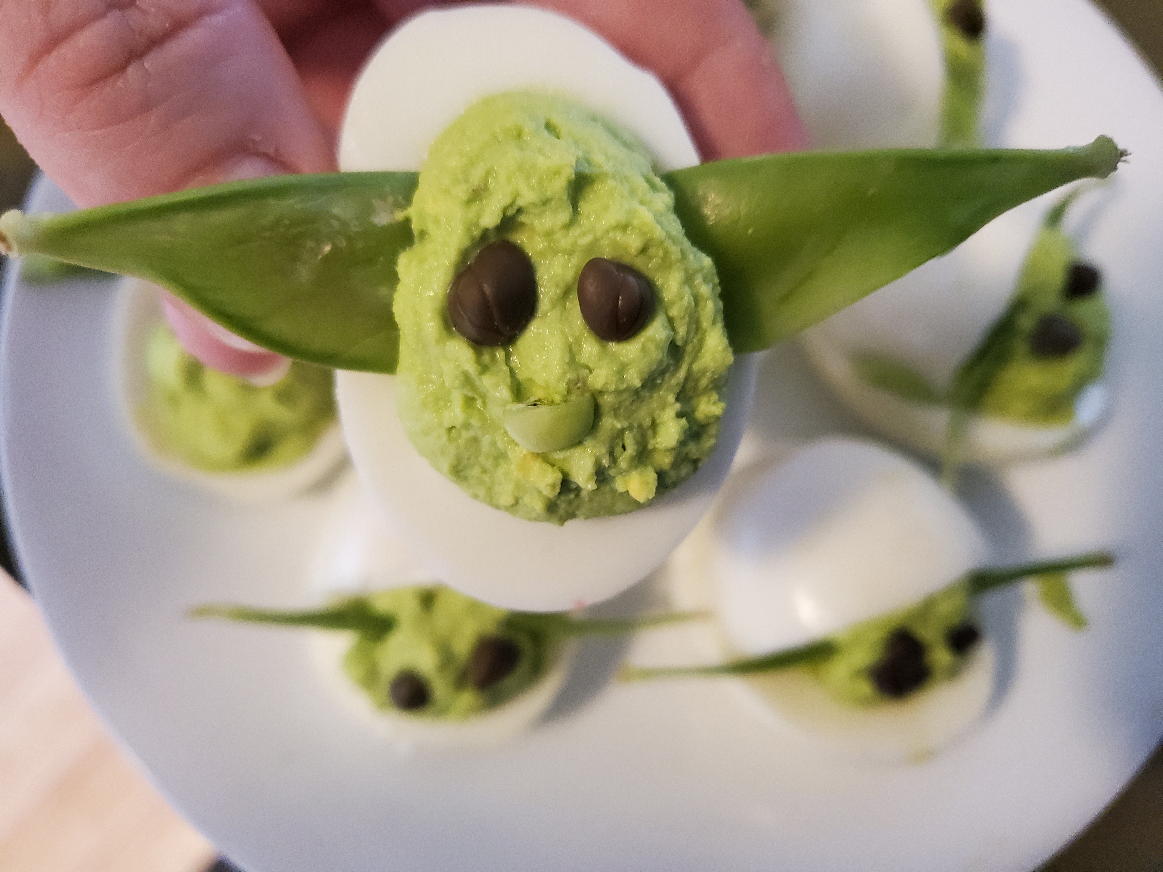 To finish the week out strong, I wanted something tasty and adorable. And what is more adorable than Baby Yoda? Off to internet google land and there were all these images of sweet Baby Yoda deviled eggs. I did a I typically do (which usually works out well for me) and briefly glanced at a few pictures, then started making eggs.
