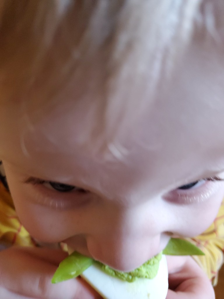 Avocado and lime was a fabulous way to change up the flavor of our typical deviled eggs, as well as get some veggies and natural green color in there! He never caught on to the ears being veggies, either! They just added a crisp element that deviled eggs often lack.