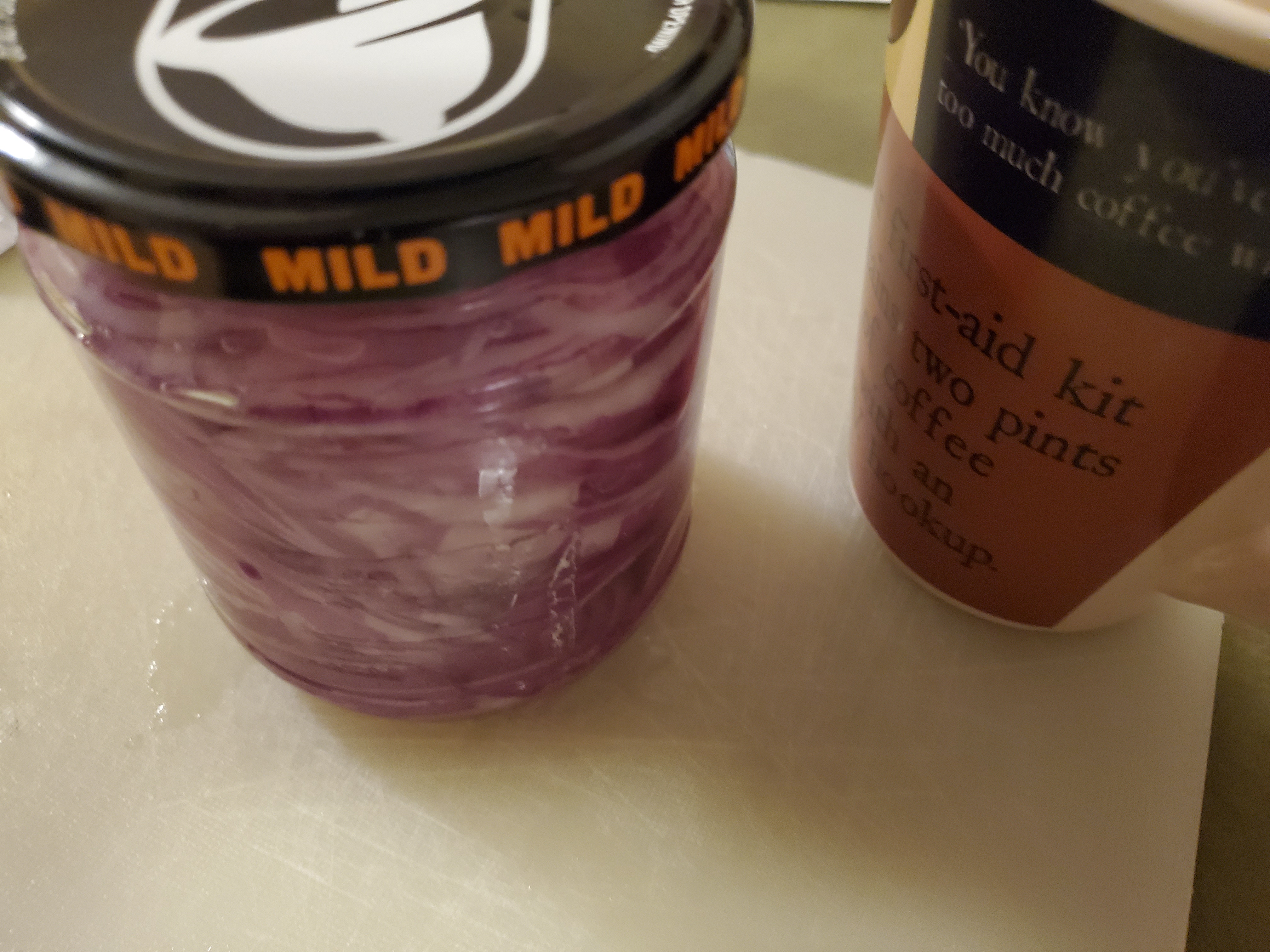 Pretty simple, right? Except…. pickled onions. How are we going to get those? My local grocery store doesn’t carry them.