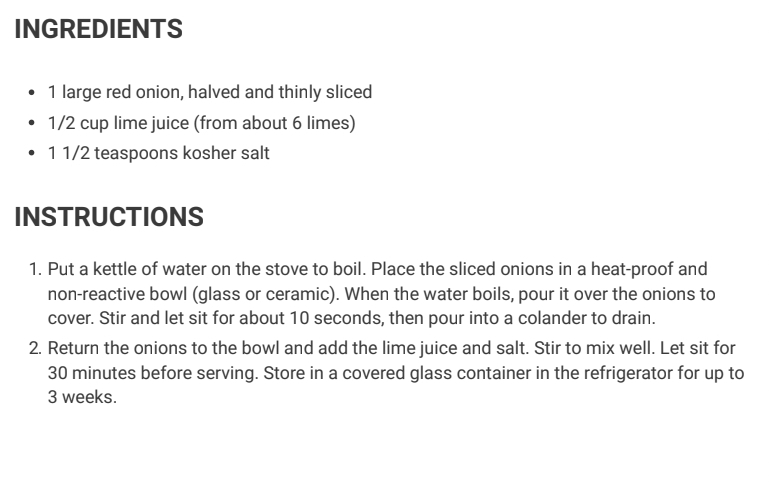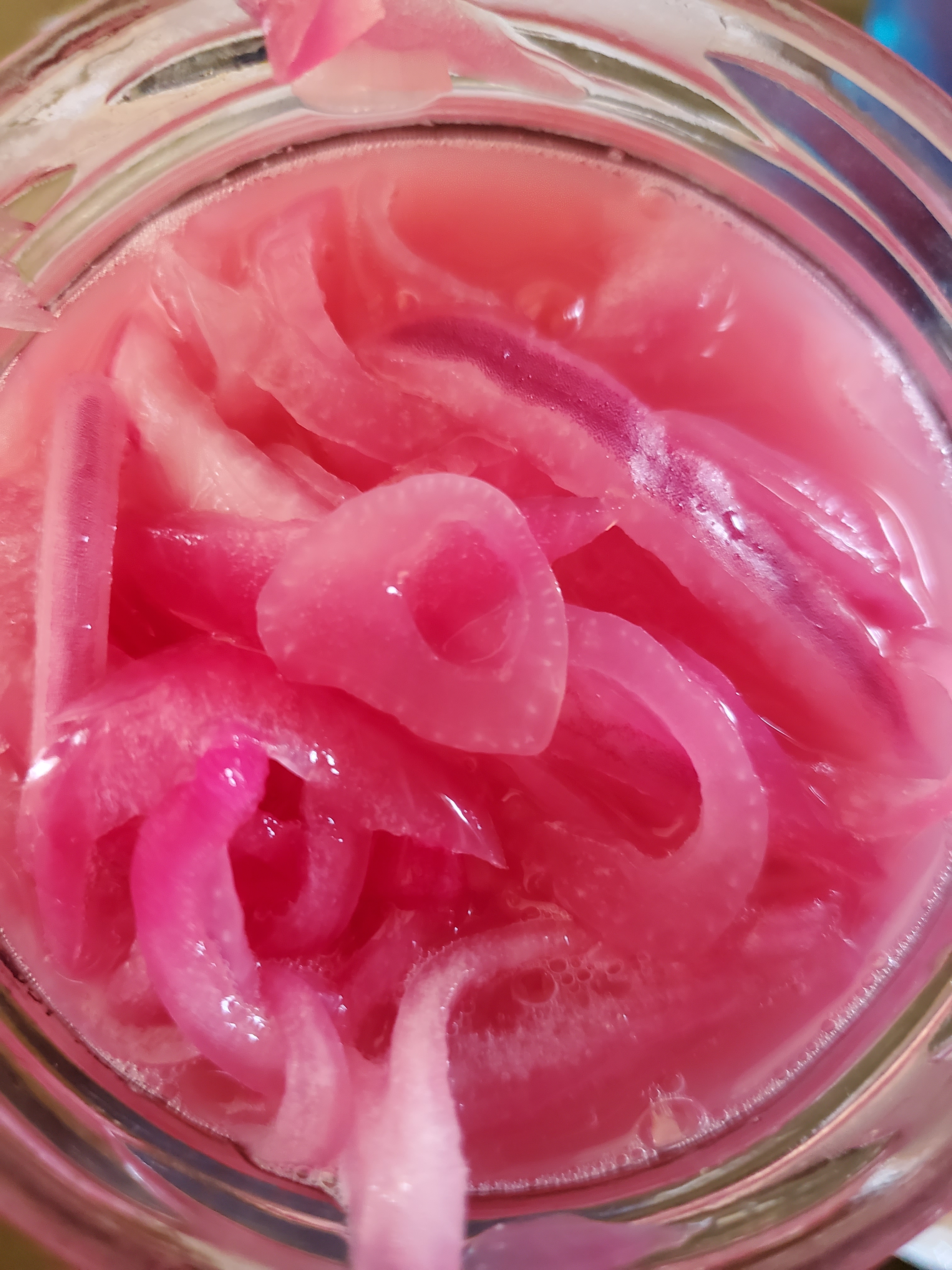 Thanks to another Google search, I learned how to quickly pickle onions with only a few ingredients/ steps, as outlined by alwaysdelcious.com:
